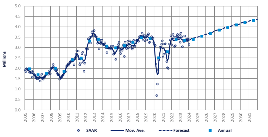Despite a 21% YoY market contraction in the initial two months of the year, we project a modest 3% rise in full-year 2024 sales. This forecast is predicated on two pivotal factors: 1) the revised Battery Electric Vehicle (BEV) incentive program, which allows automakers to import BEVs contingent upon investing in the country; and 2) the introduction of new Chinese competitors that are offering models at competitive prices. Additionally, there is speculation that the government may introduce incentives for hybrid vehicles and reduce the tax for Low Cost Green Cars (LCGC) from 3% to 0%. Such initiatives would likely lead to lower prices and stimulate demand in both segments.